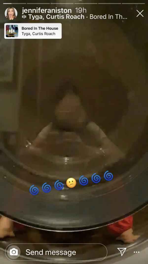 Taking to her Insta stories, the actress shared a picture of her laundry spinning in the washing machine as she played "bored in the house" in the background.
